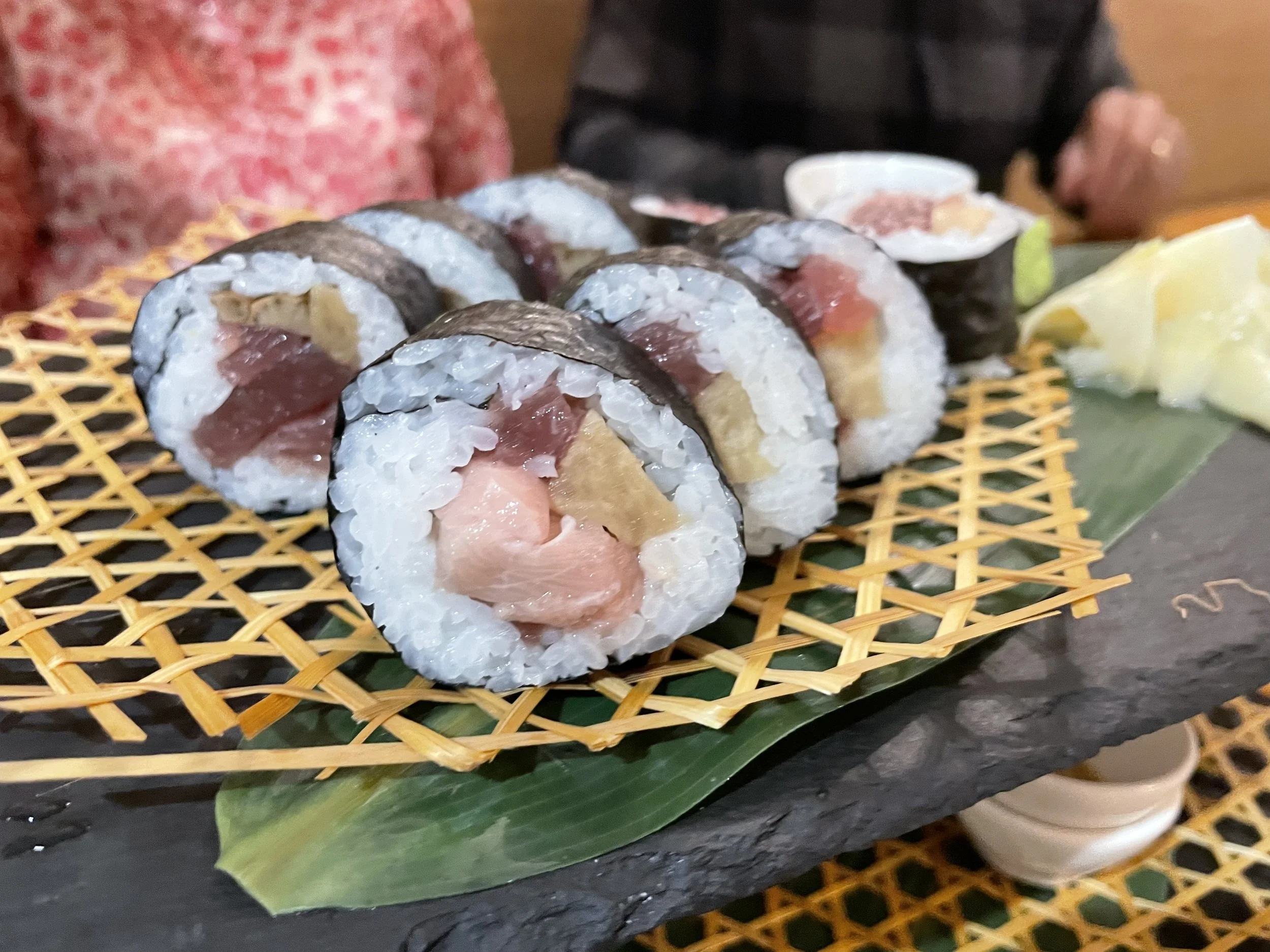 The last two dishes of the evening were fantastic, simply grilled saba (mackerel) and the tuna taku roll with raw tuna and smoked radish. I’ve never seen smoked radish anywhere, be it on a menu or as an ingredient in store but it is my new favourite thing. It brings so much flavour, pizzaz and crunch to whatever it is in, elevating what would otherwise be just a tuna roll. My husband and I recently went pescatarian for all of August (‘Fish-gust’) and have a newfound appreciation for oily fish which doesn’t get enough love from Kiwis. Simply served grilled, perfectly seasoned with the skin on and a wedge of lemon, it was perfectly cooked, the meat soft and delicate. It was a pleasure to slowly dismantle the flesh from the bones (yes you do have to look out for those). It really was a meal highlight. The kitchen surprised us with a complimentary bowl of the house miso soup at the end, a varietal of which I’d never had before and blew all other miso soups I’ve ever had out of the water. The waitress explained it was a seafood-based soup which was much clearer than usual miso and had a rich bouquet of flavour without it being specifically fishy.